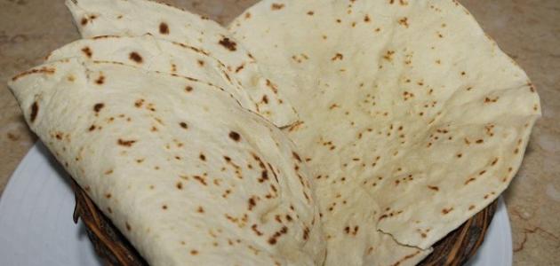 - نفرد العجين على سطح مرشوش بالدقيق باستخدام الشوبك حتى يصبح رقيقاً جداً، ثم نضعه على المقلاة ونتركه حتى يأخذ لوناً ذهبياً من الجانب الأول، ثم نقلبه على الجانب الآخر ونتركه لينضج.