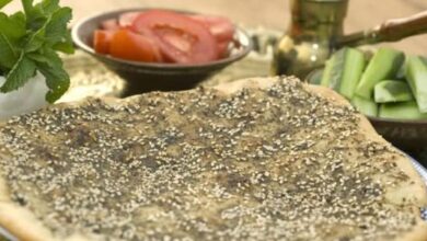 • تُخفق البيضة مع الحليب، والنسكافيه، ويُدهن وجه العجينة بالقليل من المزيج، ثمّ يُنثر عليها السمسم.