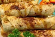 • نضع شريحة من الجبن في قطعة من خبز الطابون، ثم نثنيها.