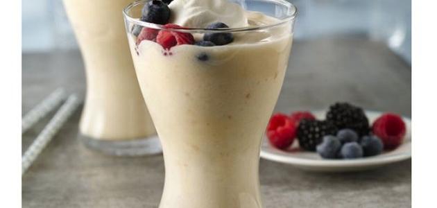 - مزج اللبن الزبادي مع الحليب السائل في الخلاط الكهربائيّ لغاية الحصول على خليطٍ متجانس.