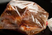 - وضع صدور الدجاج المفتوحة في كيس بلاستيكي واسع، ودقها حتى تصبح رقيقة بواسطة مطرقة اللحم.
