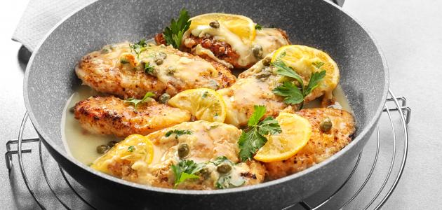 - توزيع صلصة الليمون فوق قطع الدجاج، وتقديم الطبق ساخناً، ويمكن تقديمه فوق السباغيتي المطهوة أو مع أي نوع من المعكرونة حسب الرغبة.