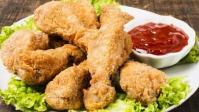 - غمر صدور الدجاج بخليط الطحين وتقليبها حتى تتغلف تماماً.