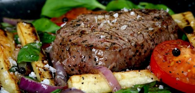 دهن الستيك بزيت الزيتون، وتتبيلها من الجنبين بكميةٍ وفيرةٍ من الملح والفلفل المطحون طازجاً.