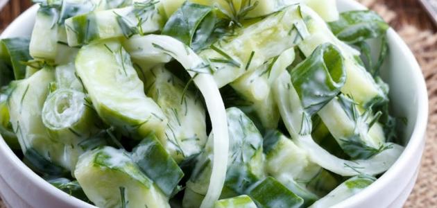 - تقطيع الخيار على شكل حلقات، ثمّ على شكل مثلثات صغيرة، وإضافتها إلى السلطة، بالإضافة إلى الملح حسب الذوق.