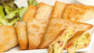 - ضعي كميّة مناسبة من الحشوة في الجلاش، ثمّ لفيه، وشكليها على شكل مثلثات.