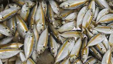 • ثلاث سمكات بوري، أو بلطي.