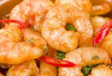 • تُخرج السمكة من الفرن، وتزيّن بالصنوبر، وتقدّم مباشرة مع الأرز الأبيض أو الخبز.
