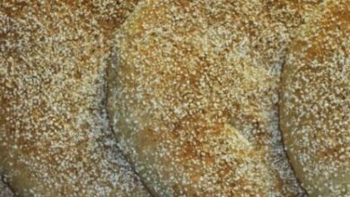 - تقسم العجينة إلى كرات صغيرة وتفرد بالشوبك بأحجام متساوية دائرية، وتوضع في صينية الخبز وتوزع عليها الأجبان وحبة البركة أو الزعتر، وتخبز في الفرن حتى يصبح لونها ذهبياً.