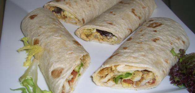 - نوزّع المزيج على خبز التورتيا، ونلفّها ونصفّها في صينية فرن.
