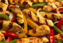 • نصف حبةٍ من: الفلفل الأحمر والأخضر المقطعان إلى شرائح، والبصل المقطّع إلى شرائح.