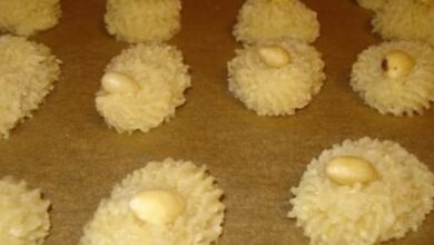 - ندخل القوالب إلى الفرن على حرارة متوسّطة، ولمدّة عشرين دقيقة أو أقلّ بقليل حتى ينضج.