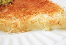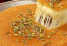 - توزيع كمية قليلة من الحشو في وسط كل قرص من الكنافة ثمّ تقديمها باردة.