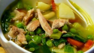 - إضافة مرقة الدجاج، والدجاج وتحريك المكوّنات ثمّ تغطية الخليط، وتركه على نار هادئة لمدة خمس دقائق.