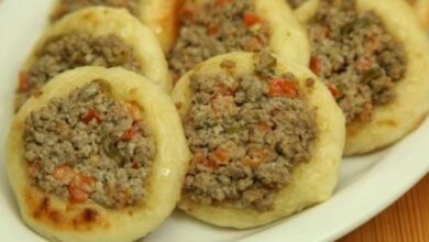 - نقطع العجينة إلى دوائر متوسطة الحجم، ونتركها مرة أخرى لترتاح لمدة خمس دقائق.