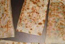 - نُخرج الصواني من الفرن، ونترك قطع الصفيحة حتى تبرد قليلاً، ثمّ نقدمها إلى جانب اللبن.