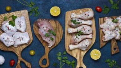 - اسلقي الدجاج مع إضافة مكعب مرقة الدّجاج، وينزع عنه الجلد والعظم ويقطّع إلى قطع متوسّطة.