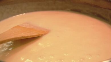 - استمر في المزج إلى أن يصبح قوامه متجانساً.