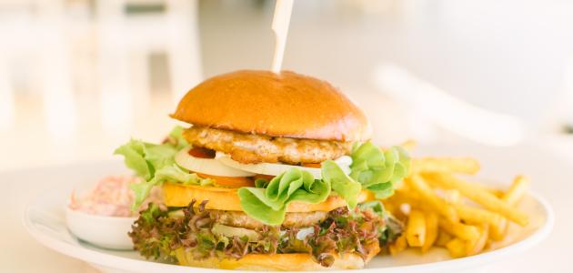 تقديم برغر الدجاج على خبز البرغر مع مزيج صوص الترياكي والمايونيز، ثمّ إضافة أوراق الخس المبشورة.