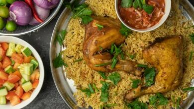 - نصفُ دجاجةٍ مُقطَّعةً إلى أربعِ قطعٍ.