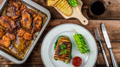 - تقْديمُ قطعِ الدَّجاجِ مع المُثوَّمة والكاتشب.