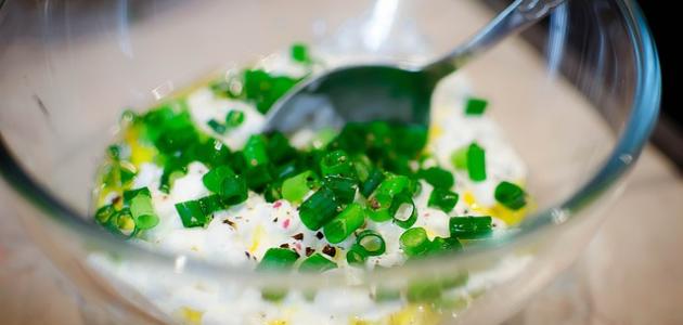 • تتبيل صلصة اللبن بالملح وبإضافة المزيد من عصير الليموناضة بحسب الذوق، والتقليب جيداً باستعمال ملعقة طعام بحركة دائرية حتى تتجانس مكوّنات الصلصة تماماً.