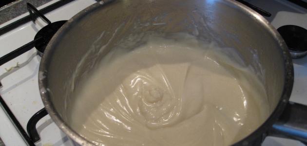 • وضع الزبدة في قدرٍ على حرارة منخفضة حتى تذوب ثمّ إضافة الطحين ونقلبه حتى يتحمص، ثمّ إضافة الحليب والتحريك جيداً، قد لا نحتاج كمية الحليب كاملة لأن بعض أنواع الطحين لا تحتاج إلى كميةٍ كبيرةٍ من السائل.