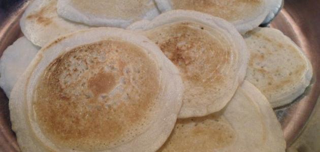 - وضع مقدار ربع كوب من العجينة في مقلاة واسعة وكبيرة، ووضعها على نار حامية، وتركها داخل المقلاة لمدة لا تقل عن عشر دقائق؛ حتى تنضج تماماً، وتظهر فقاعات على وجه المقلاة، ثم عمل باقي الكمية حتى تتنهي بالكامل، وفي حال عدم ظهور الفقاعات يتم إضافة المزيد من الماء إلى العجينة.