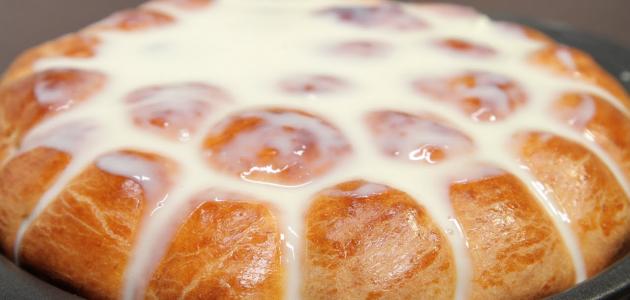 • نسكب على وجه خلية النحل الحليب المكثّف المحلى، ونرشّ القرفة.
