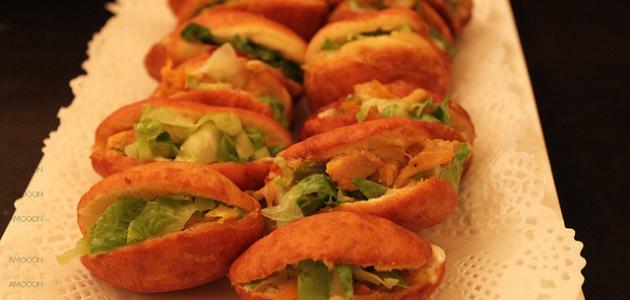 - وضع الخس في وعاء عميق، ثمّ إضافة الدجاج المقطع والمايونيز، وحشوه داخل التوست.