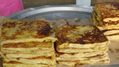 - نقسم العجين إلى كريات صغيرة بحجم حبة الجوز، ثمّ نرق العجينة بشكل دائري، ونحشو العجينة بالجبن.