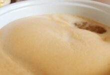 • تصفية الخليط بمصفاة ضيقة الثقوب، مع الضغط على الخليط والتحريك جيدًا حتى يذوب السكر.