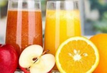 • نسكب العصير في إبريق زجاجي، وندخله إلى الثلاجة كي يبرد.