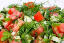 - نضع جميع الخضروات في طبق التقديم ونقلّبها مع بعضها قليلاً.