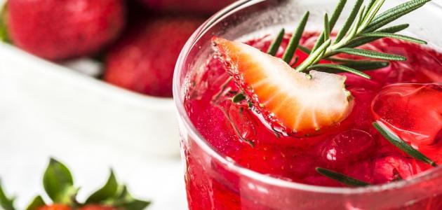 - سكب العصير في أكواب التَّقديم، والتزيين بشرائح الفراولة ثمّ تقديمه باردًا.
