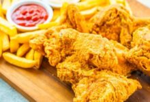 - نضيف البطاطا المقلية فوق طبق فتة الدجاج.