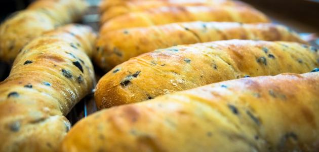 - ترك الأرغفة مدة ربع ساعة لتختمر مرة ثانية، وإدخال الصواني إلى فرن متوسط الحرارة وخبزها مدَّة ربع ساعة تقريبًا، ويمكن وضعها أسفل الشواية مدَّة دقيقة واحدة عند الرغبة بتحميصها.