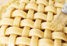 - دهن فطيرة اللحم بالبيض باستعمال فرشاة صغيرة.