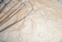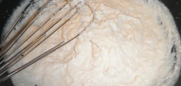 - وضع القشطة على الحليب والتحريك المستمر حتى يصبح الحليب دافئ.