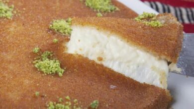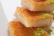 - توزيع كمية قليلة من الحشو في وسط كل قرص من الكنافة ثمّ تقديمها باردة.
