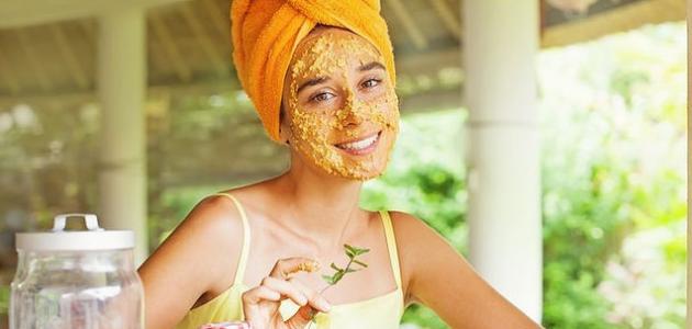 مزج نصف ملعقة من الكركم، مع ملعقتين من الحليب، ونصف ملعقة من عصير الليمون، وملعقتين من مسحوق الحمص في وعاء مناسب الحجم، ثمّ تطبيق المزيج فوق البشرة لمدة ربع ساعة على الأقل، ثمّ يُغسل جيداً بالماء.