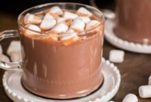 • نرفع المزيج عن النار، ونضيف صوص الكراميل، وصوص الشوكولاتة، ونقلّب المكوّنات معاً.