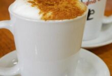 - تزيين أكواب القهوة بالكاكاو والكريمة المخفوقة وتقديمها مباشرة بجانب البسكوت أو المعمول.