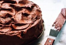 • نسكب صلصة الشوكولاتة فوق الكيك بعد إخراجه من الفرن، ثمّ نضعه داخل الثلاجة لكي يبرد.