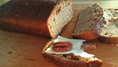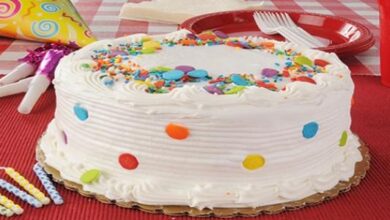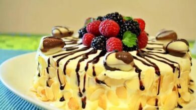 • نسكب المزيج في قالب الكيك، ونخبزه داخل الفرن المشغل على درجة حرارة مئة وثمّانين درجة مئوية لحوالي نصف ساعة.