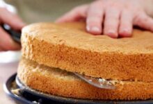 • نخرج الكيك من الفرن، ونتركه جانباً لكي يبرد.
