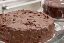 • نسكب صلصة الشوكولاتة فوق الكيك بعد إخراجه من الفرن، ثمّ نضعه داخل الثلاجة لكي يبرد.