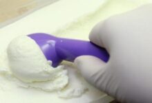 - نضع مزيج الآيس كريم في الآلة الخاصة بذلك، ونخلطه لمدة أربع دقائق حسب التعليمات الواردة.