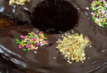 • نترك الكيك مدّة ثلث ساعة في الفرن لينضج.