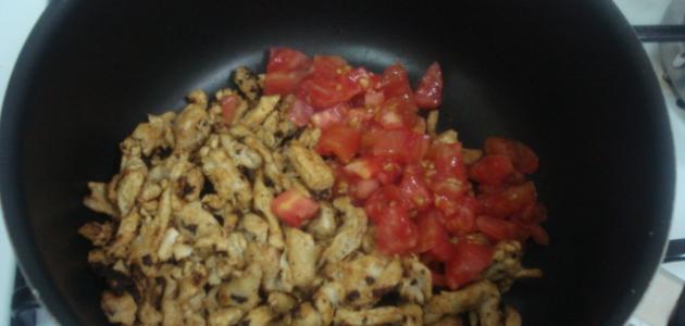 - نضع اللحمة في مقلاة فيها زيت، ونرفعها على النار العالية، مع التقليب المستمر، ثم نضيف البصل إليها، والملح، والفلفل الأسود، والبهارات، ونقلب هذه المكوّنات إلى أن تنضج اللحمة، ثم نتركها جانباً.